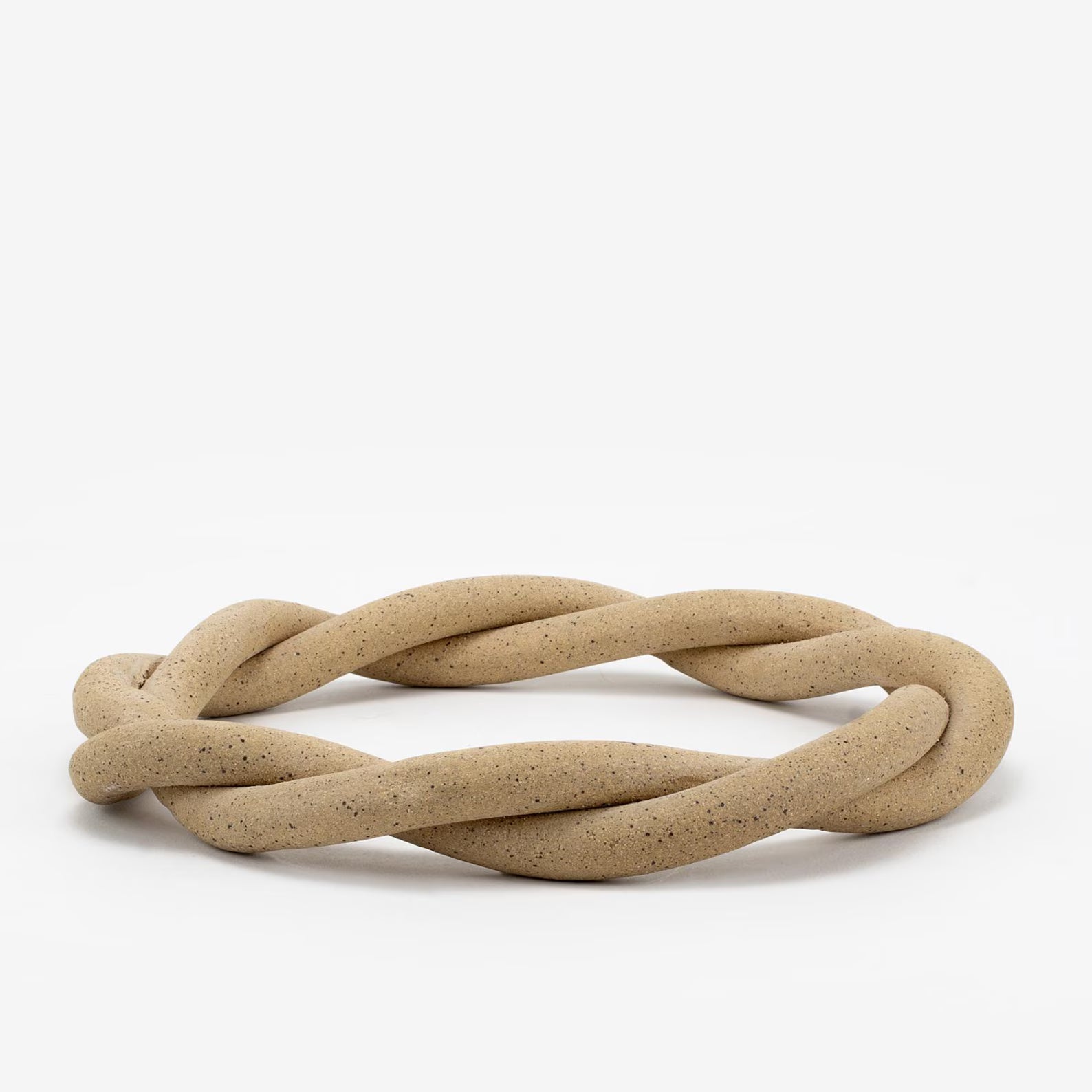 Protect your dining table and countertops in style with this artistic handmade pottery trivet. Crafted from speckled clay with a unique twisted knot design, this ceramic hot pad serves as both a functional heat shield for serving dishes and a beautiful piece of modern rustic decor. Its earthy tones and textural finish make it a perfect addition to farmhouse, japandi, or minimalist kitchens.